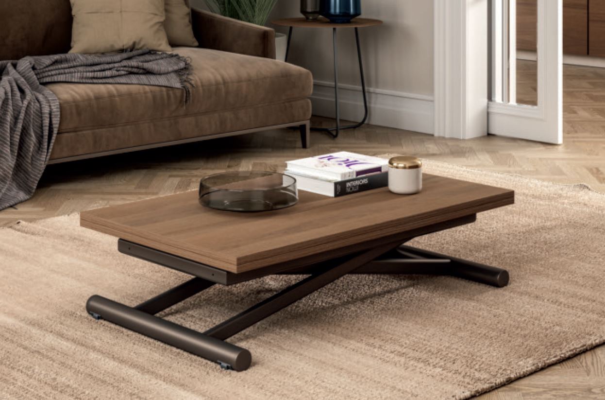 Это мультифункциональная мебель, которая предназначенная для малогабаритных помещений. В сложенном состоянии такой стол занимает мало места и выглядит как невысокий журнальный столик, а в разложенном виде становится высоким обеденным столом, который позволяет рассадить 8 человек.